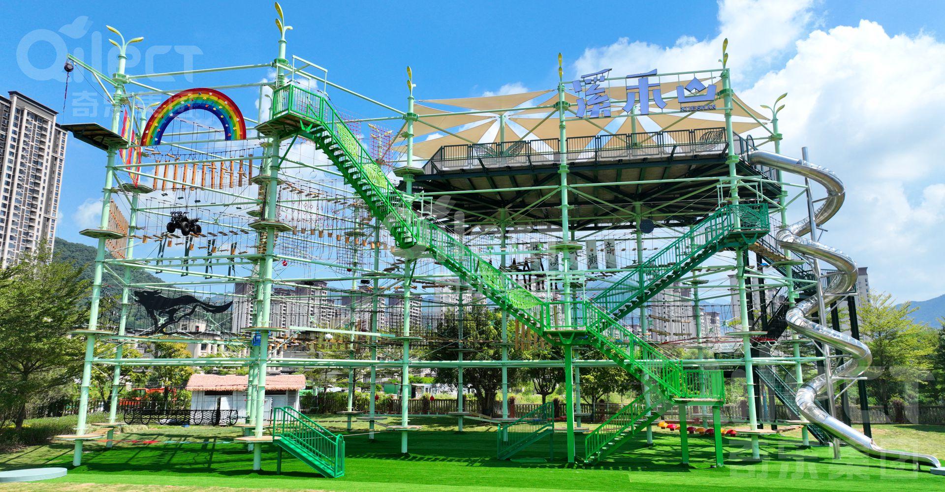 廣州奇樂游樂設備有限公司,總部坐落于粵港澳大灣區廣州黃埔區,是國內無動力游樂設備領域知名的綜合服務商,業務涵蓋游樂設備咨詢、策劃設計、定制生產、售后及運營指導為一體的全案服務。 公司多年來秉承 " 奇新必樂 樂無止境”的發展理念深耕國內外無動力親子家庭市場,在沉浸式樂園、探險樂園、戶外綜合拓展樂園以及叢林穿越等無動力設備領域有著豐富的客戶案例和實戰經驗。公司擁有國家高新技術企業、國家貫標企業、進出口權著作權以及國家專利等多項認證資格。 奇樂集團成立至今,始終秉承“客戶至上,誠信經營”的宗旨,并以創新的技術力量傲立于市場前沿,在同行中脫穎而出。 目前我們有著20000㎡的生產車間,先進齊全的機械加工設備,完善的游樂設備檢測能力。主要產品包含;水晶塔、鉆石塔、兒童樂園、淘氣堡、蹦床、沙池、網紅秋千、不銹鋼滑梯、公園滑梯、兒童攀爬設備、水上游樂設備、兒童拓展設備、兒童公園游樂設備整體方案設計、生產制造等一系列兒童游樂設備產品。 近年來,憑借本公司誠實守信和良好經營作風及可靠的產品質量,擁有一支愛崗敬業的游樂設備技術團隊,深受國內外各界用戶的的廣泛認同與歡迎,形成了良好的市場知名度與美譽度,銷售網絡遍及國內各大中城市。